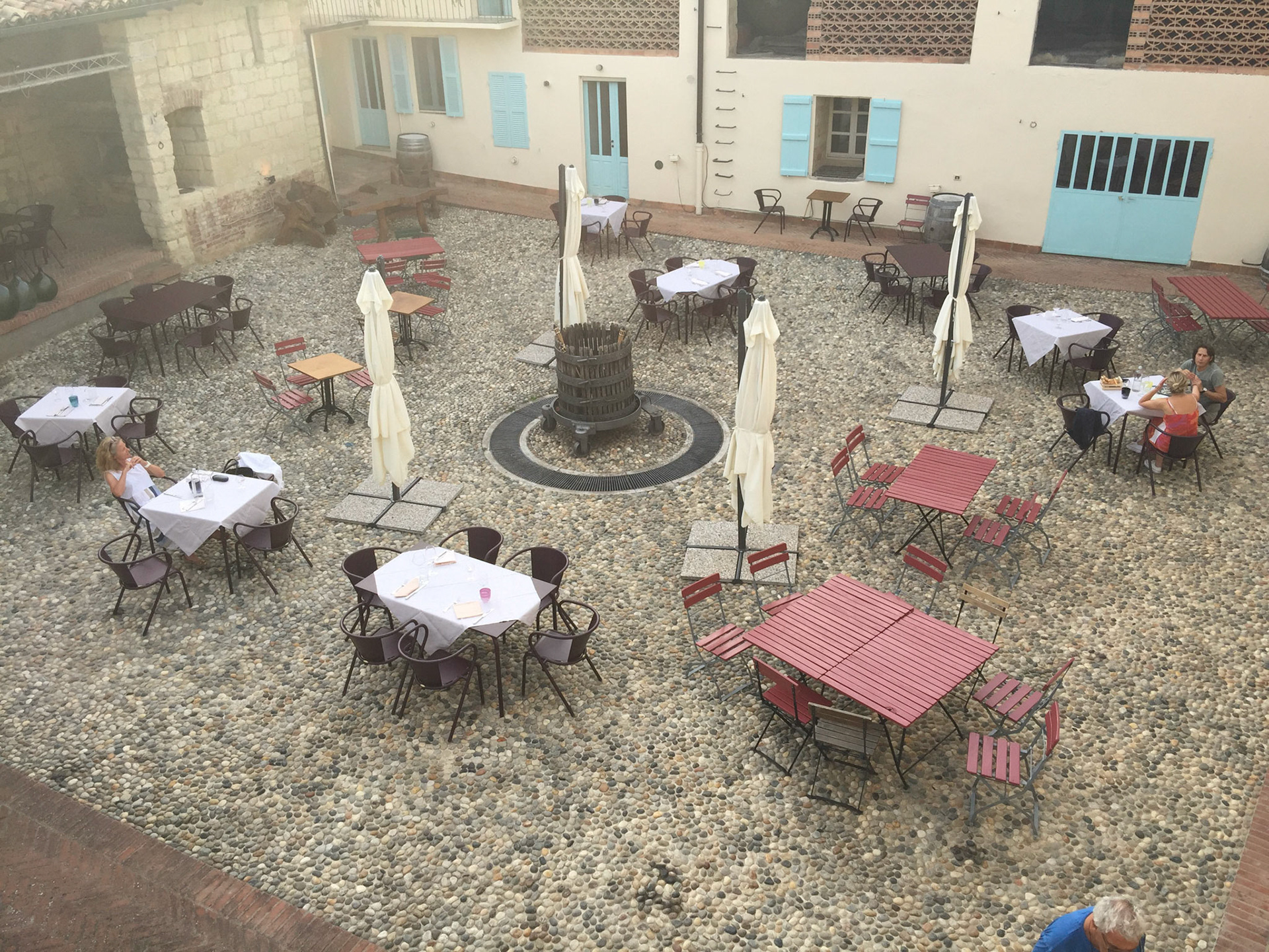 Moleto actually looks like a ghost town, but there is this wonderful restaurant Cave di Moleto, and a bar with live music is also nearby at the end of the street. You have a great view over the surrounding hills, there are tufa caves around the area, the material used to build the houses and castles in Monferrat. A spacious place in the court invites to a romantic dinner.
